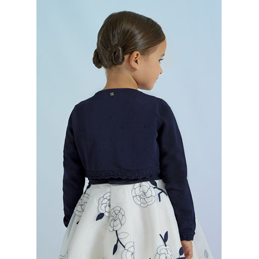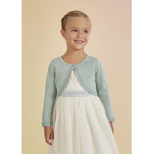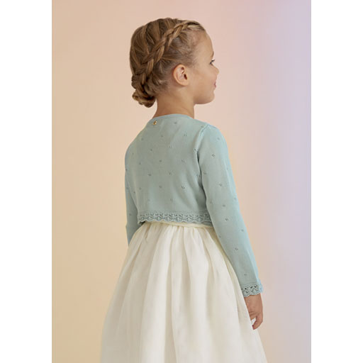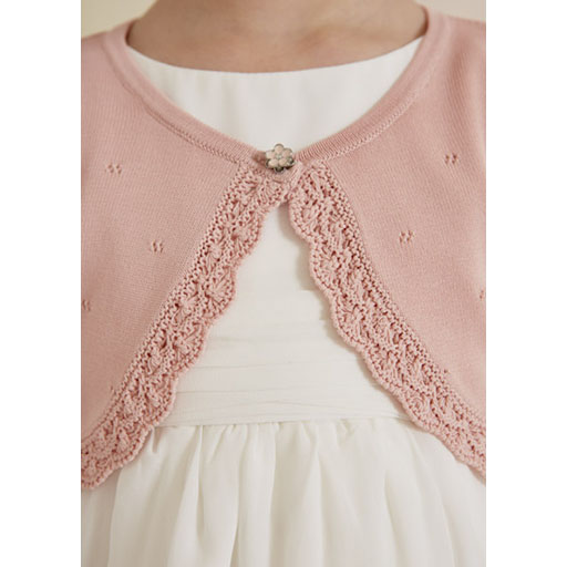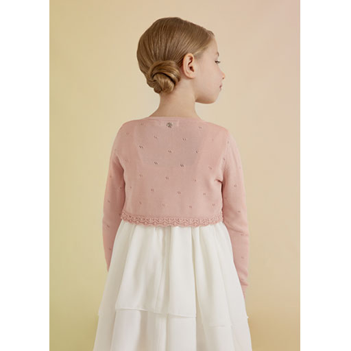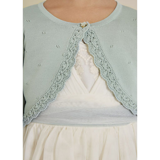 Toda la rebeca lleva un bonito calado y tanto la terminación de las mangas como