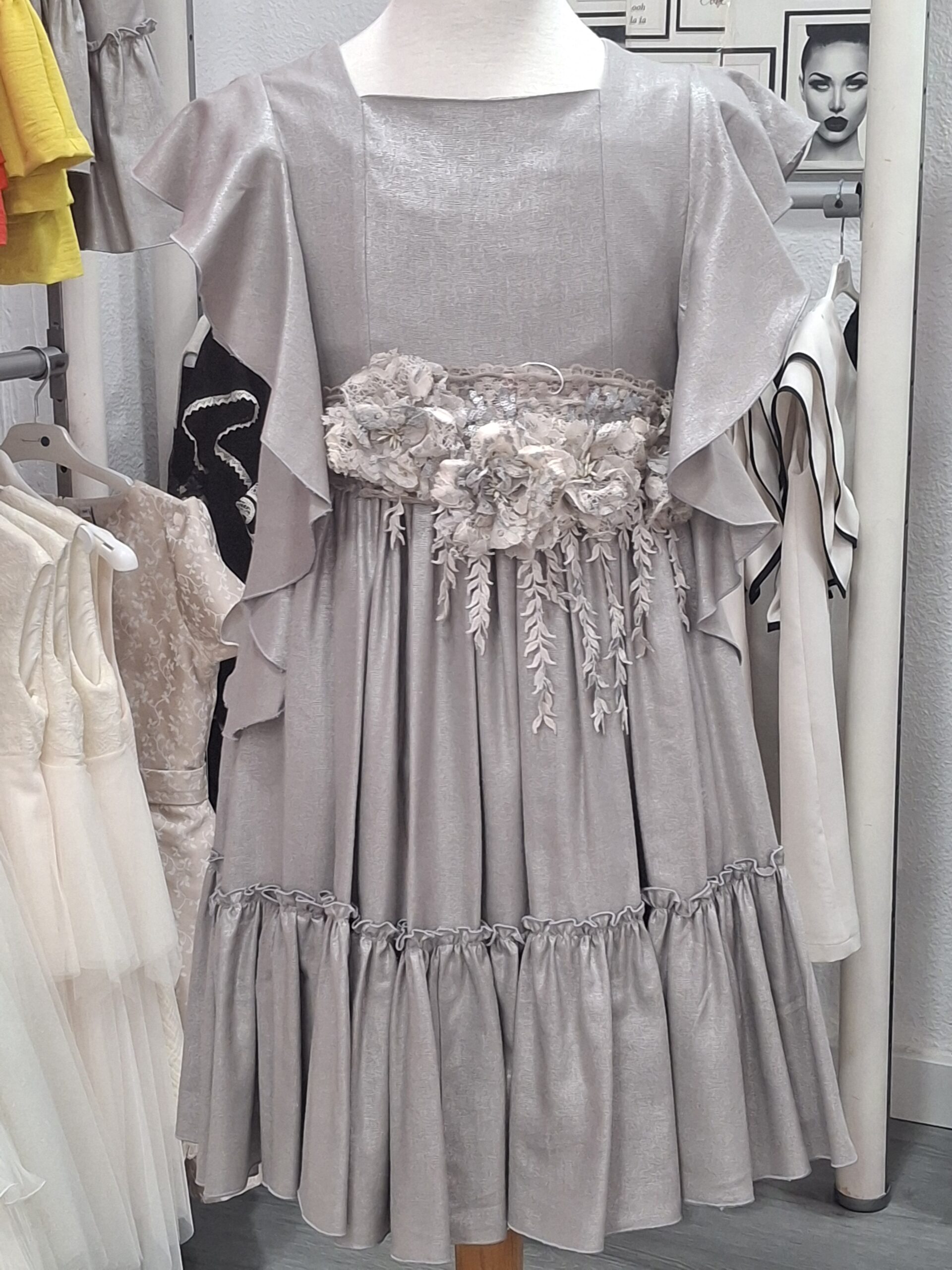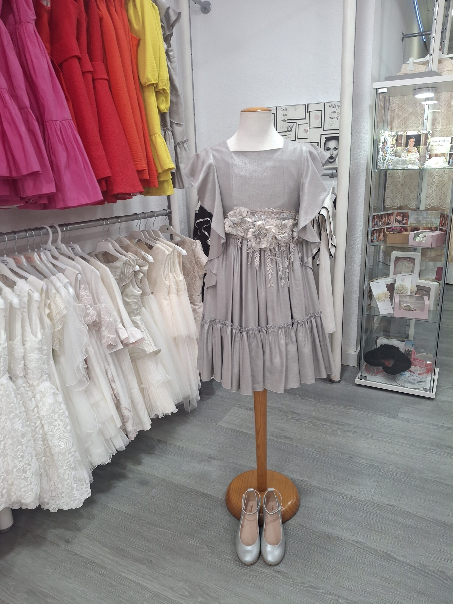 Vestido ceremonia infanti/ juvenil en tejido de lino con