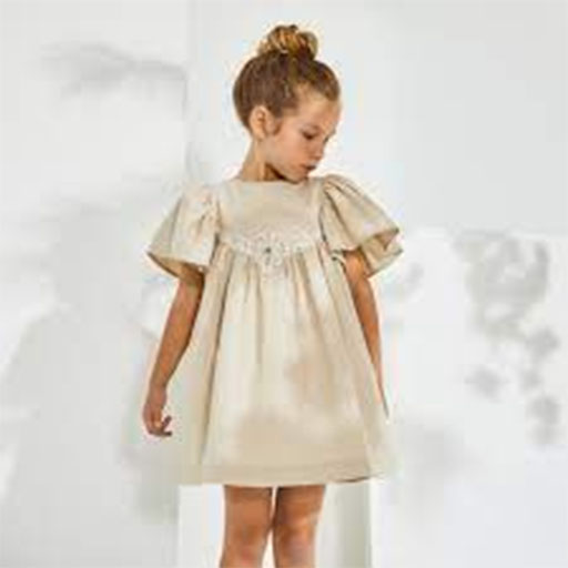 de las mangas estan bordadas en beig y blanco , el modelo es corte imperio lo que deja