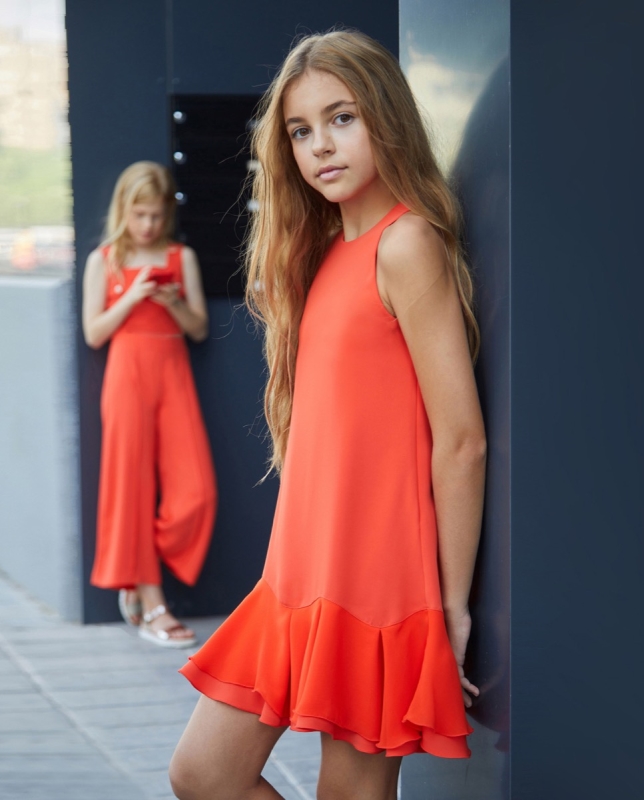Vestido niña/jovencita en tejido de crep y gasa .