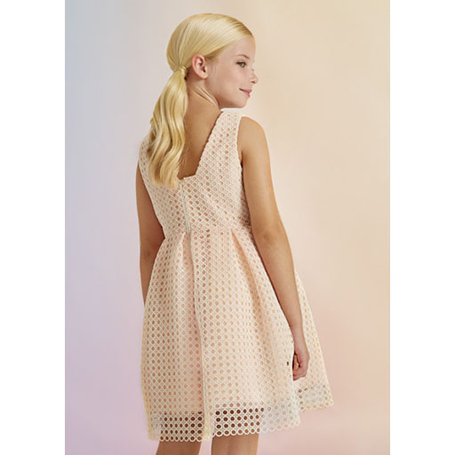 Vestido de guipur en color melocoton con un tejido troquelado que es una monada