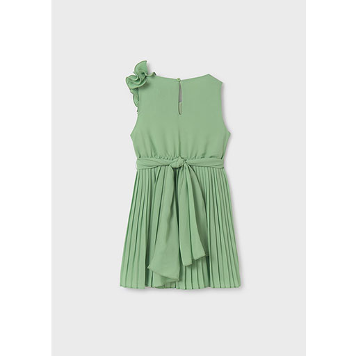 Vestido de niña para ceremonia , color verde y tejido de gasa .